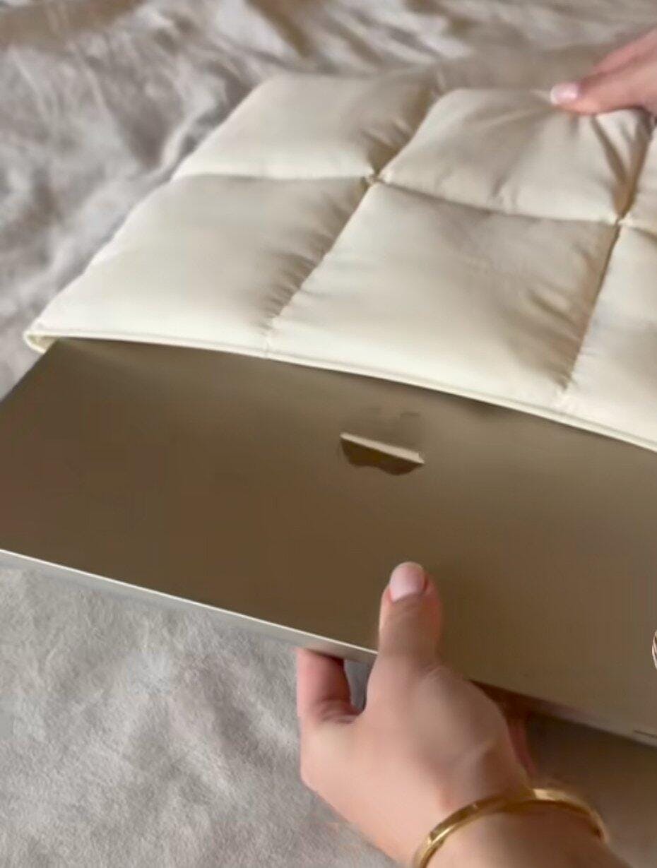 The photos don’t do justice. The material feels luxurious, the stitching is clean, and it fits my MacBook perfectly. Love the puffy design.